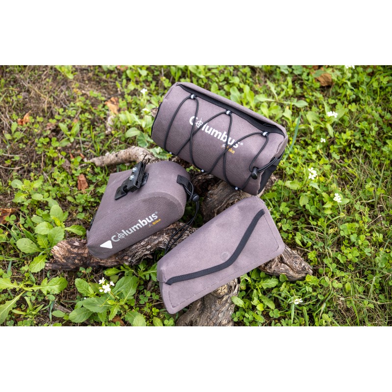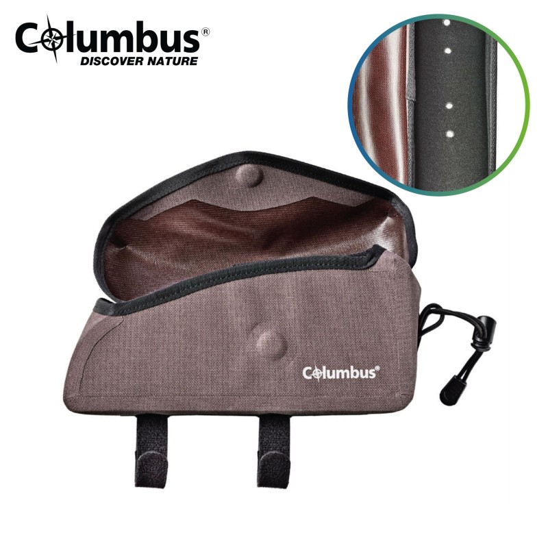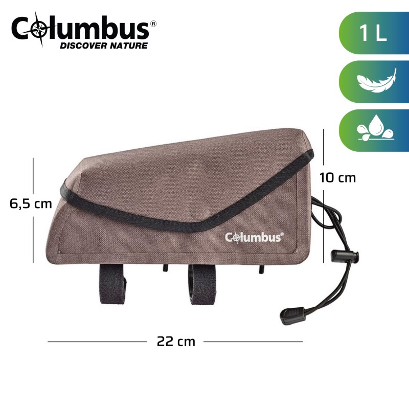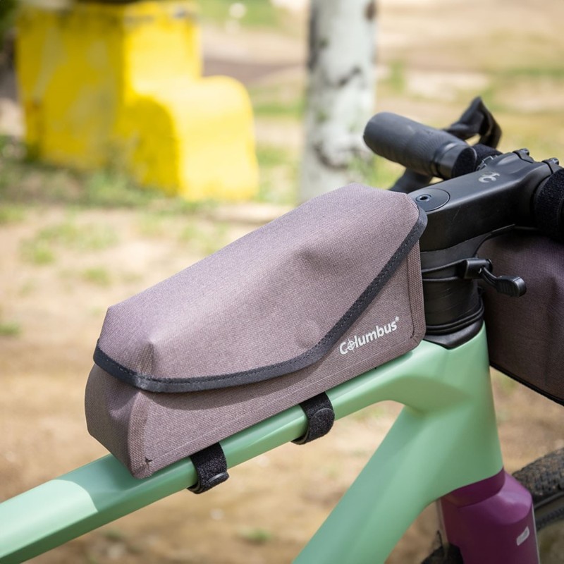 Fabriquée en tissu ECO 300*600D CD Dobby TPU, la sacoche de cadre Columbus est légère, résistante à l'eau et disponible en couleur marron, alliant élégance et fonctionnalité.