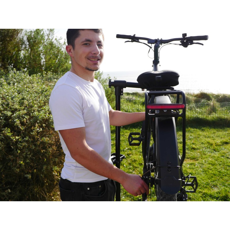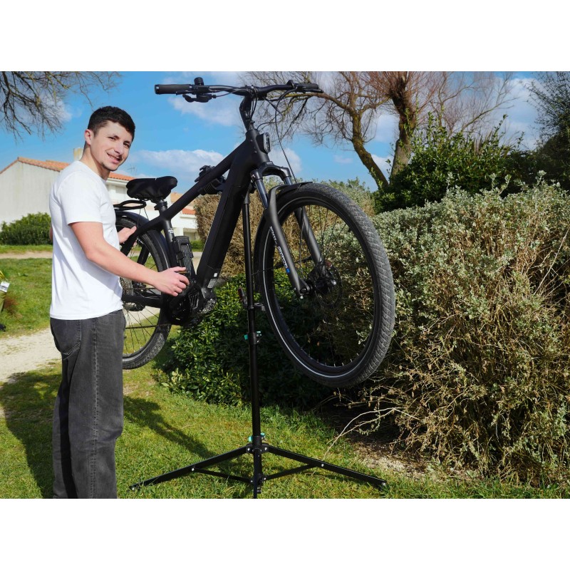 Profitez d'un pied stable pour vos vélos jusqu'à 30 KG, simple à utiliser avec sa pince qui tourne à 360°.