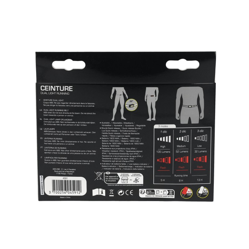 Avec son angle inclinable à l'avant, la ceinture Dual Light est idéale pour une visibilité accrue lors de la course à pied et les promenades en condition de faible luminosité.
