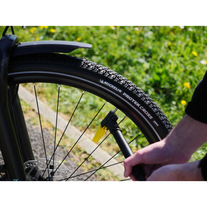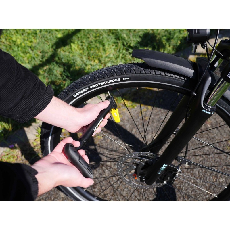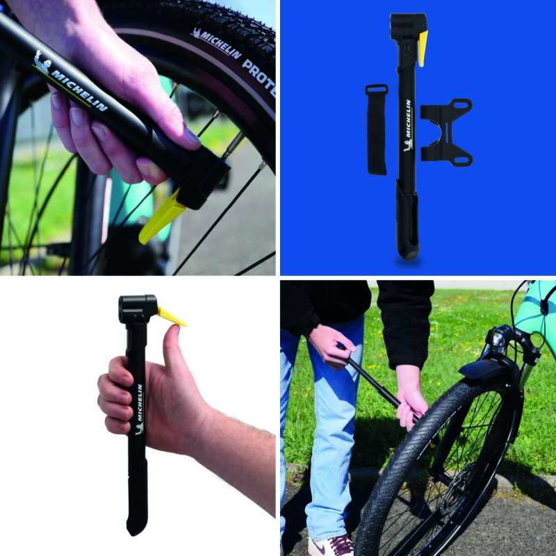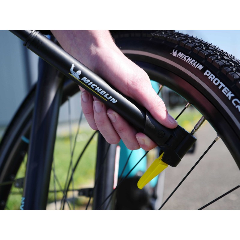 La mini-pompe Dual-head MICHELIN AIR TECH permet de gonfler à une pression maximale de 8 bars, soit 120 PSI.