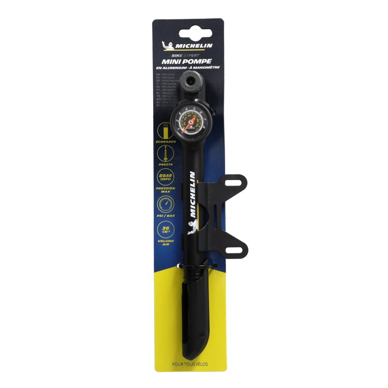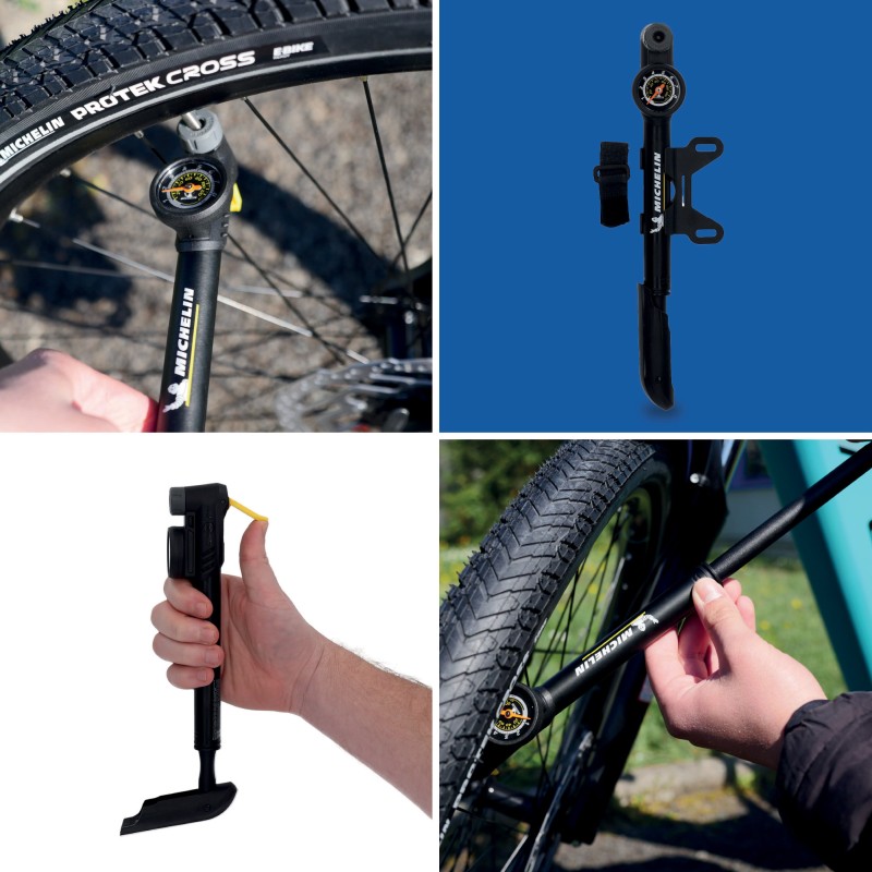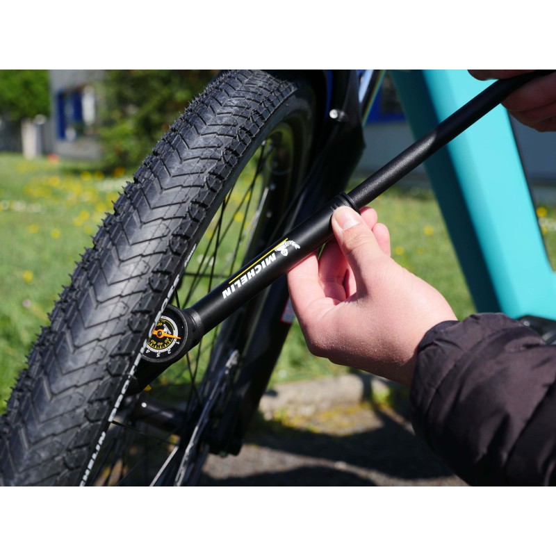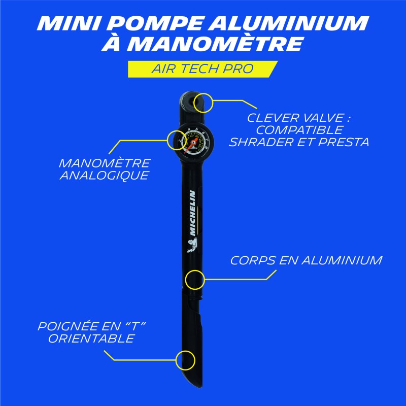 Mini pompe aluminium à manomètre clever valve MICHELIN AIR TECH PRO