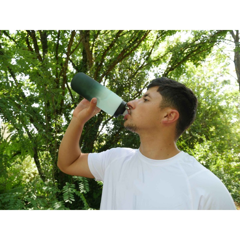 Facile d'utilisation à vélo, sa tétine souple anti-retour permet au cycliste de ne pas renverser son liquide en buvant pendant le pédalage.