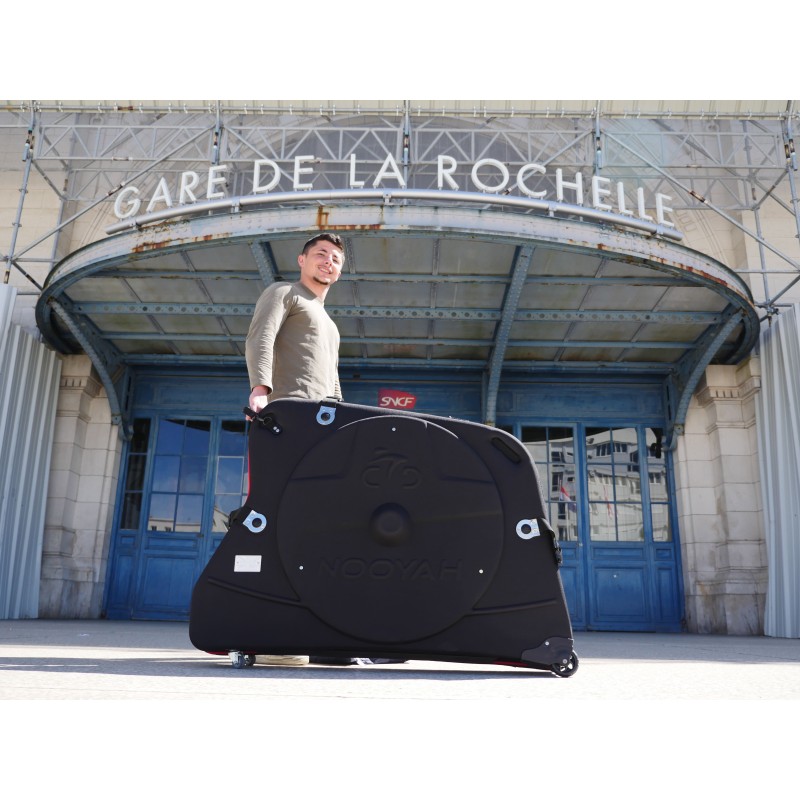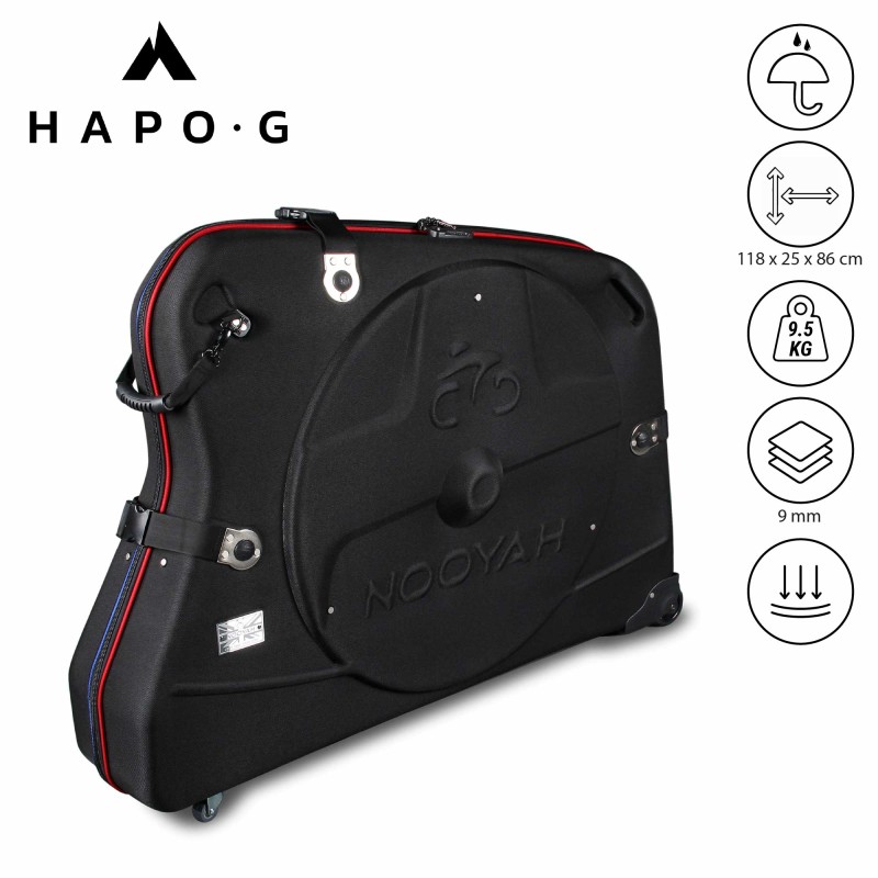 Compacte, sécurisée et pratique grâce à ses roues, la valise de transport vélo thermoformée Hapo-G est l’alliée idéale des cyclistes professionnels et amateurs en déplacement.