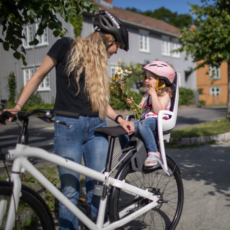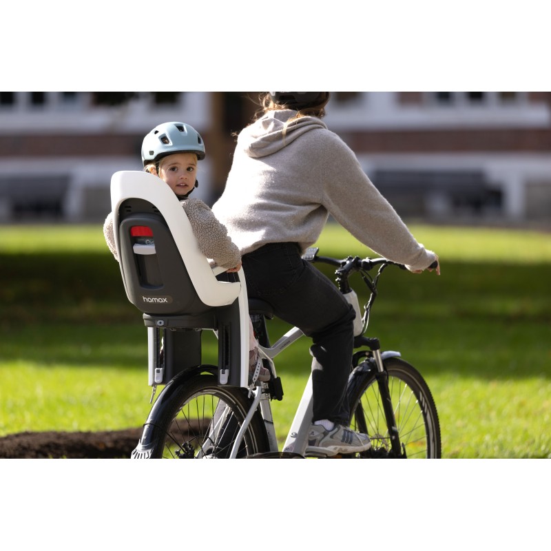 Le porte-bébé haut de gamme Caress de la marque HAMAX est destiné à être fixé au cadre du vélo, sur le tube de selle, grâce à un support de fixation « Extra Fastening Bracket » à dégagement rapide.