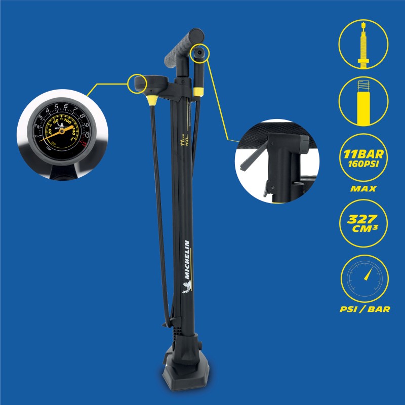 Caractéristiques de la pompe à pied à manomètre MICHELIN AIR CONTROL XT :