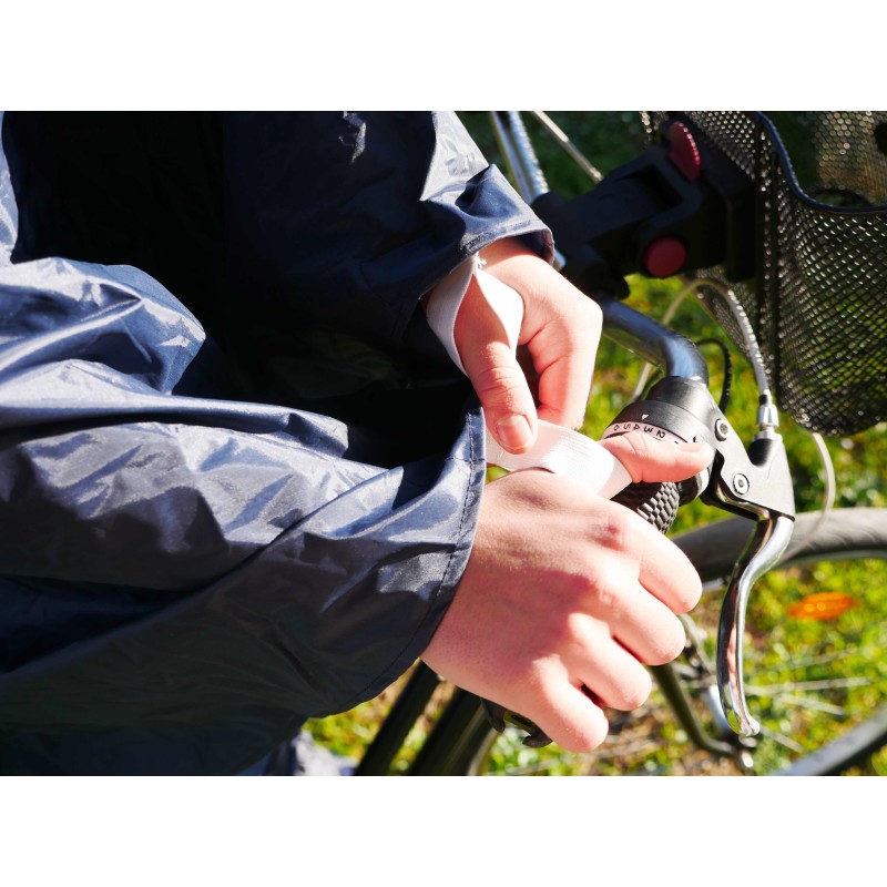 Fabriquée en 30% polyester et 70% PVC, cette cape allie légèreté et imperméabilité, vous permettant de rouler en toute sérénité sous la pluie.
