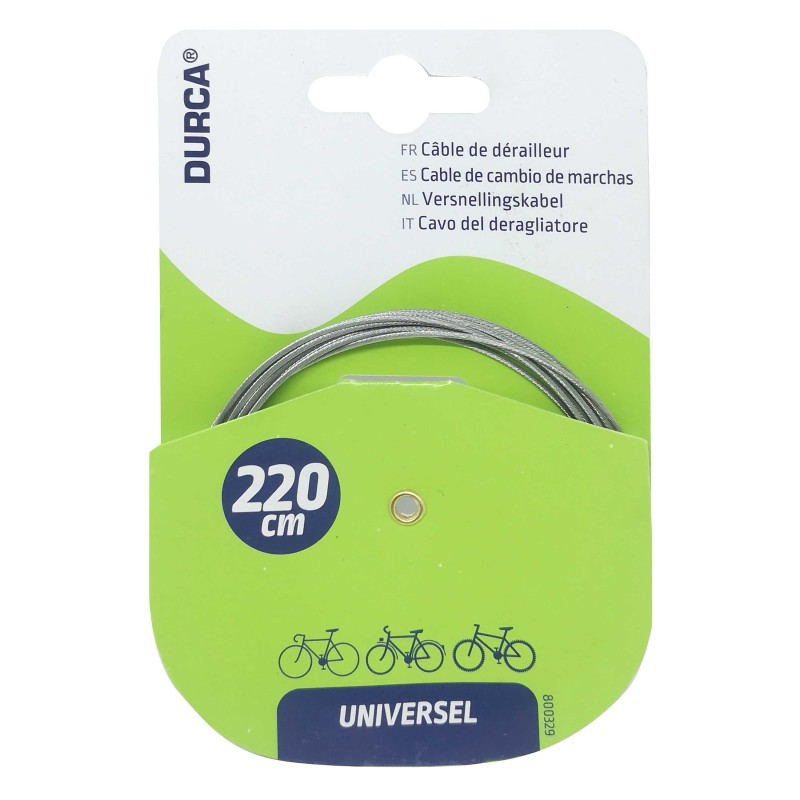 Câble de dérailleur d'une longueur de 2,20 mètres. Universel, il convient à tous les types de vélo.