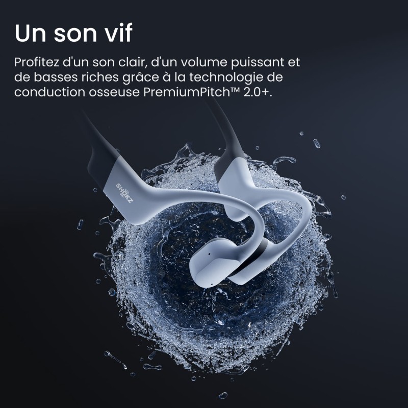 Le casque à conduction osseuse OpenSwim Pro USB-C de la marque Shokz vous offre une multitude de fonctionnalités grâce à ses deux modes Bluetooth et MP3 intégrés dans un seul appareil. Basculez facilement entre les deux modes grâce à un bouton intuitif ou via l'application Shokz. Profitez d’une meilleure expérience d’écoute avec ses 32 Go de stockage MP3 intégrés. Bénéficiez d’une qualité sonore supérieure et de basses intenses grâce à la technologie PremiumPitch™ 2.0+. Avec l'OpenSwim Pro USB-C, soyez conscient de votre environnement et restez à l’écoute du monde qui vous entoure. Avec son design innovant composé de crochets auriculaires souples, l’Openswim Pro USB-C vous assure un port agréable et exempt de pression. L’indice d’étanchéité IP68 vous garantit une résistance à l’eau parfaite.