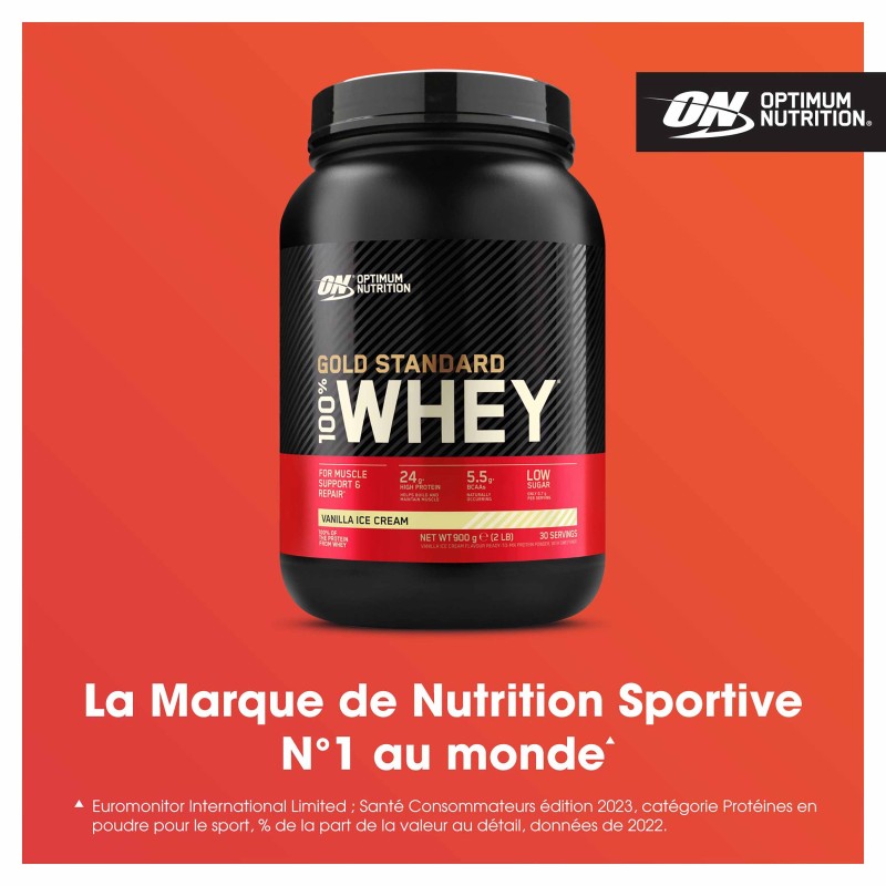 Protéine Gold Standard 100% Whey Glace à la Vanille 900g OPTIMUM NUTRITION