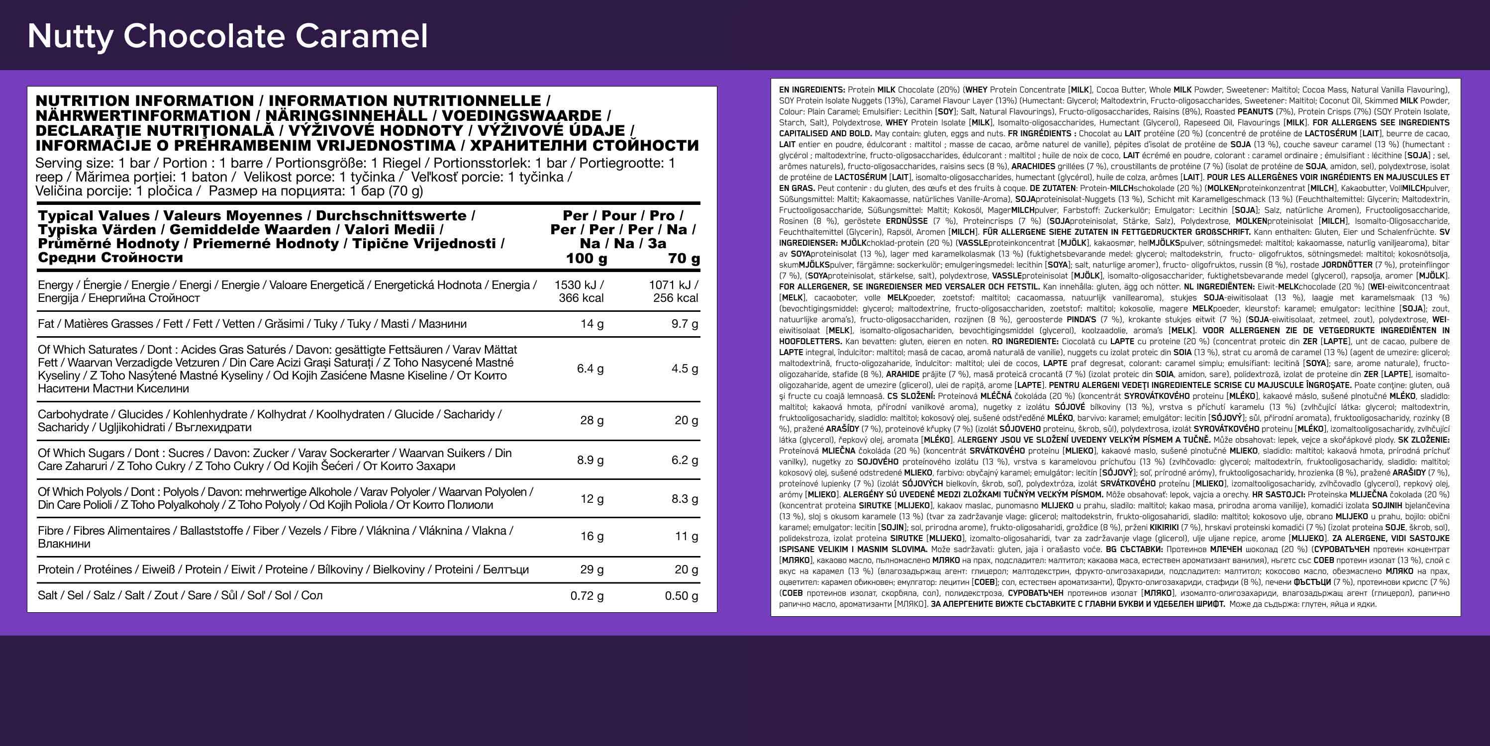 • Chaque barre protéinée fournit 20 g de protéines de grande qualité, notamment de l’isolat de protéines de whey, qui aide à réparer et à reconstruire les muscles après des entraînements intenses.