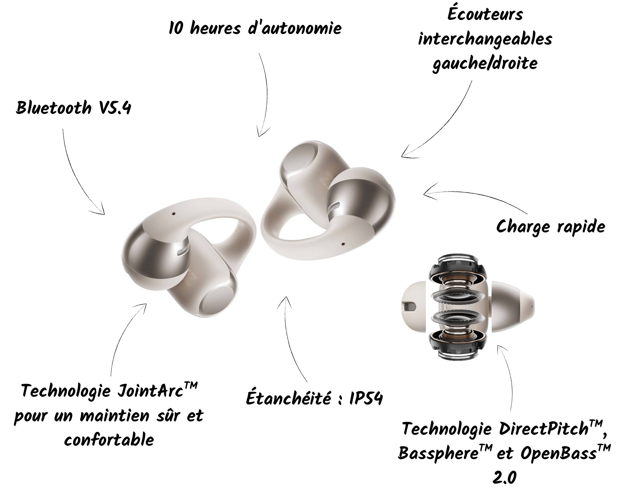 Caractéristiques des écouteurs Bluetooth OPENDOTS ONE :