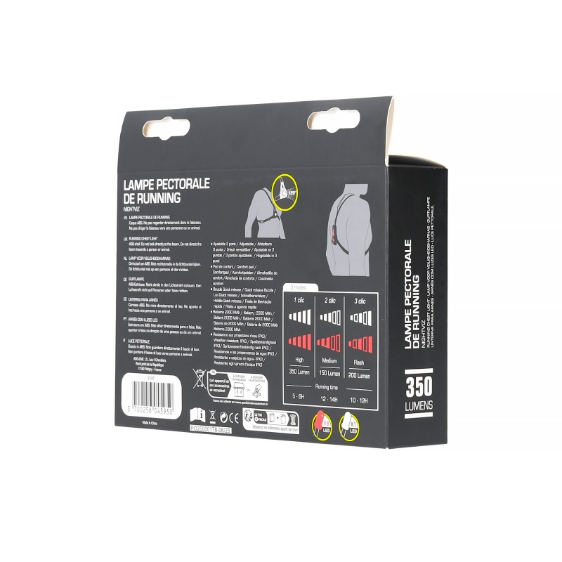 Conçue pour les coureurs soucieux de leur visibilité et de leur sécurité, la lampe pectorale de running Nightviz contribue à votre sécurité lors de vos aventures par conditions de faible luminosité.