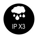 IPX3 : protégé contre les chutes de pluie jusqu'à 60 degrés de la verticale.
