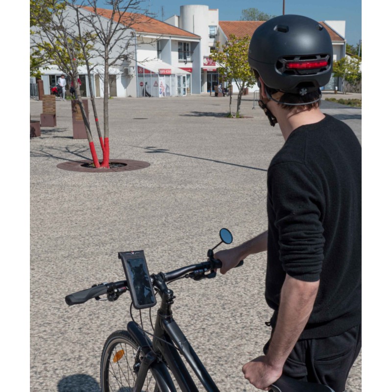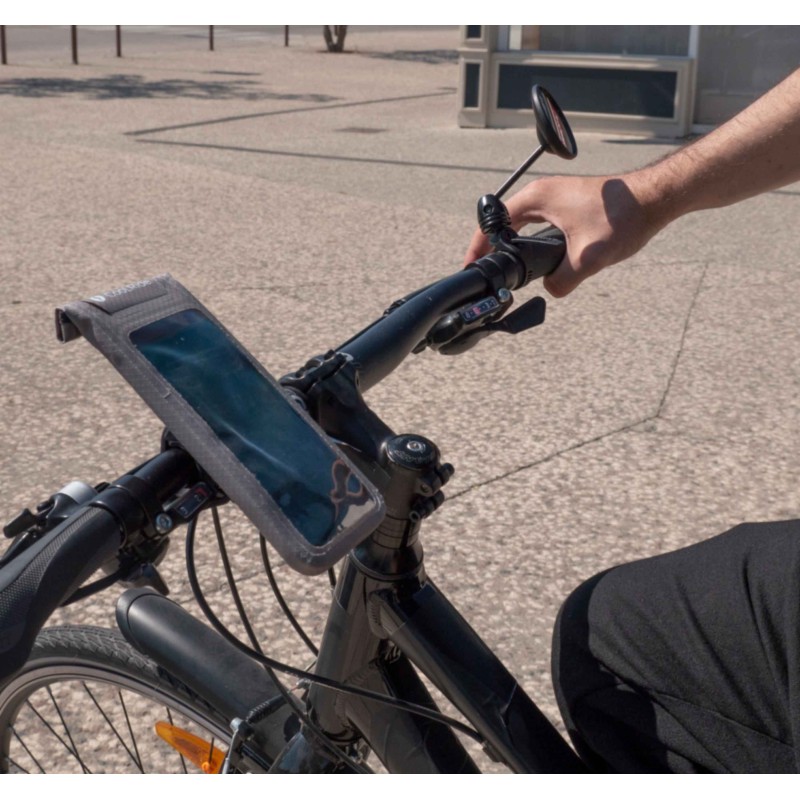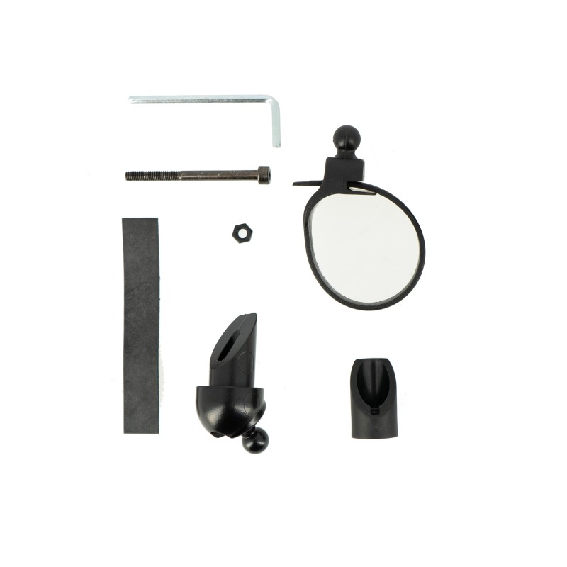 Le boîtier en plastique noir est élégant, fonctionnel et robuste. Il peut être replié et orienté dans n'importe quelle position. Son montage peut se faire à gauche comme à droite. Le rétroviseur peut être fixé sur le guidon ou dans le guidon.