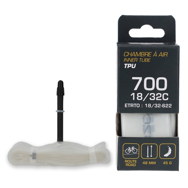 - Adoptez la nouvelle génération de chambres à air en polyuréthane thermoplastique (TPU), pour rouler plus vite et plus loin !