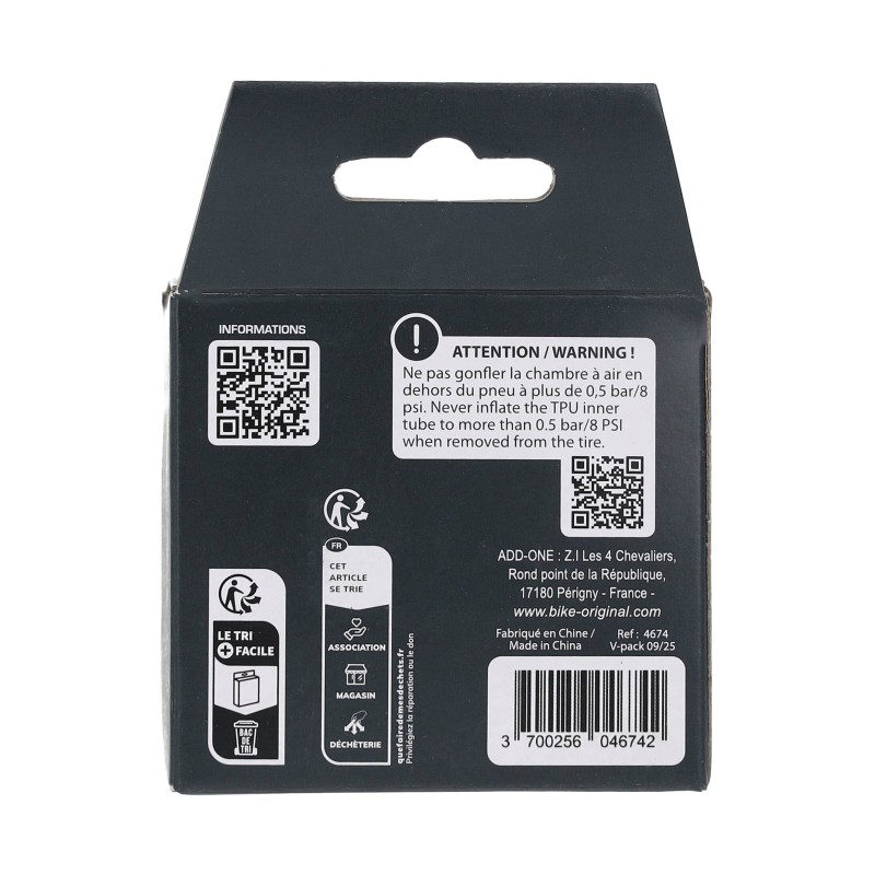 - Que vous soyez en pleine compétition, en sortie d’entraînement ou simplement en balade, les chambres à air en TPU BIKE ORIGINAL garantissent fiabilité et performance.