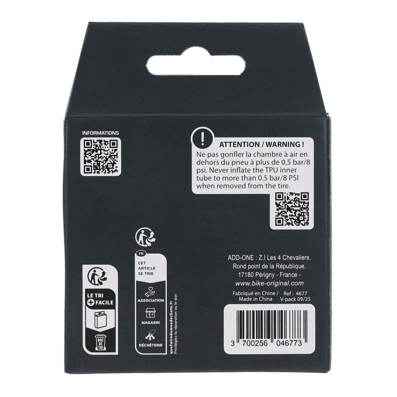 - Que vous soyez en pleine compétition, en sortie d’entraînement ou simplement en balade, les chambres à air en TPU BIKE ORIGINAL garantissent fiabilité et performance.