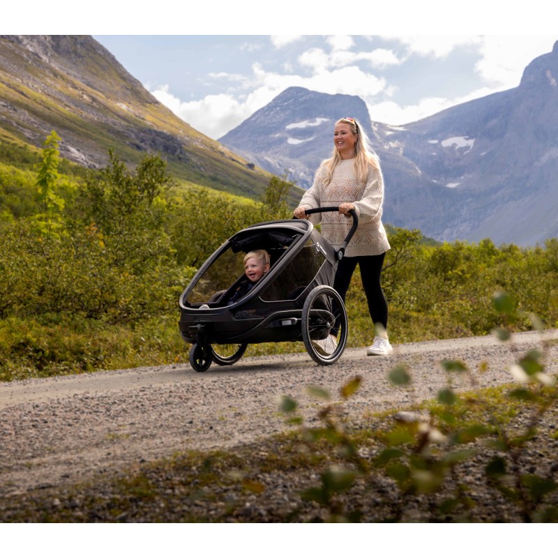 Son tout nouveau système d’attelage associé à la transition intelligente entre poussette et vélo offre une connexion facilitée et un changement de mode sans effort.