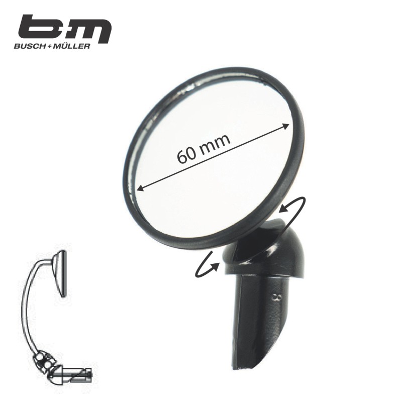 Le rétroviseur Cycle Star 60 mm de la marque BUSCH & MÜLLER offre un grand champ de vision. Il permet de se déplacer en toute sécurité en ayant une bonne visibilité sur l'arrière du vélo. Le verre à un diamètre de 60 mm et est protégé contre les éclats de verre.
