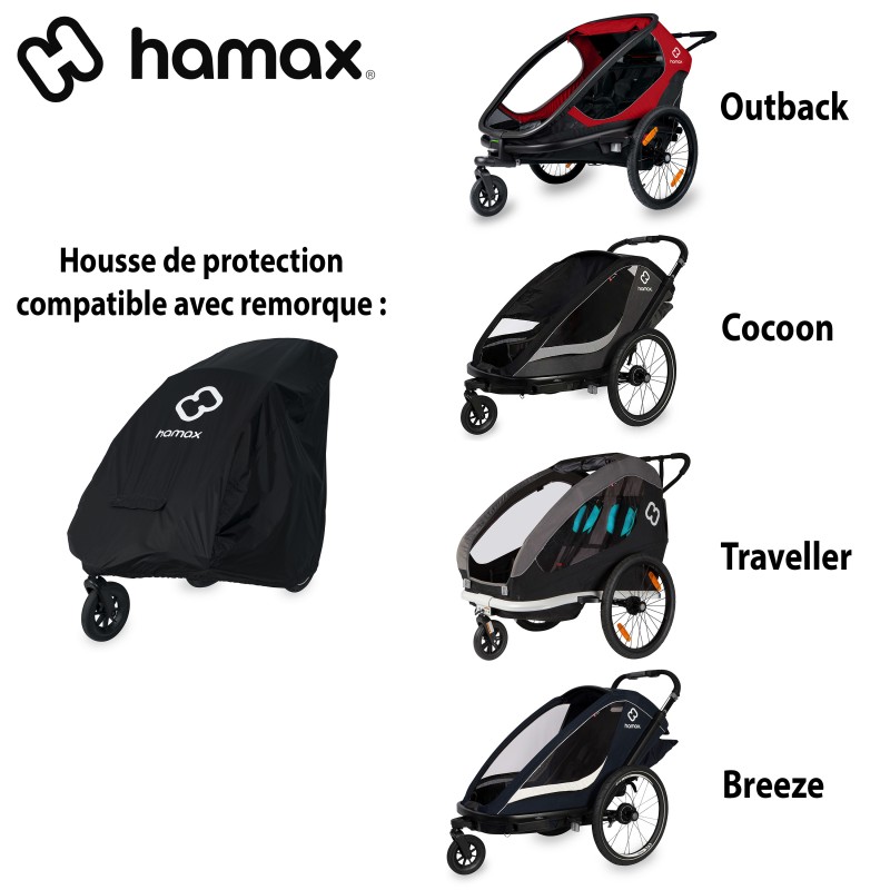 La housse de protection pour remorque Hamax protège vos remorques du soleil, de la pluie et de la poussière lorsqu'elles ne sont pas utilisées.