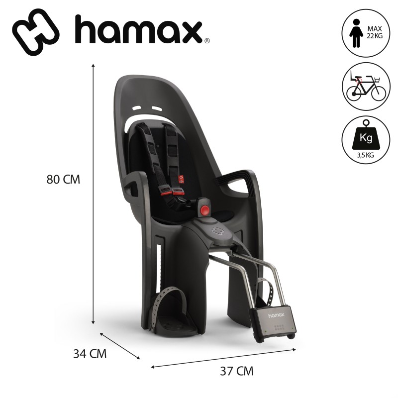 Le porte-bébé Zénith de la marque HAMAX est destiné à être fixé au cadre du vélo grâce à un support de fixation « Quick release » à dégagement rapide. Il est conçu pour faciliter la vie des parents et rendre plus confortable le trajet des enfants.