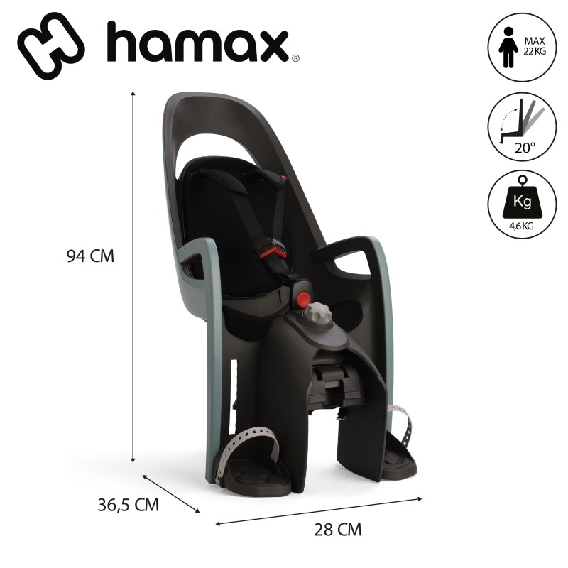 Caractéristiques du porte-bébé HAMAX CARESS Noir/Vert à fixation sur porte-bagages :