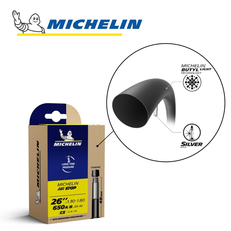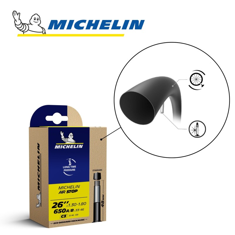 Les caractéristiques de la chambre à air MICHELIN C3 AIRSTOP 650A/B x 33-46 ou 26"x1.30-1.80 33/46x559 ST48 mm:
