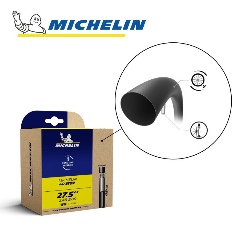 Les caractéristiques de la chambre à air MICHELIN B6 AIRSTOP 27.5"X2.45-3.00 62/77x584 ST 48mm: